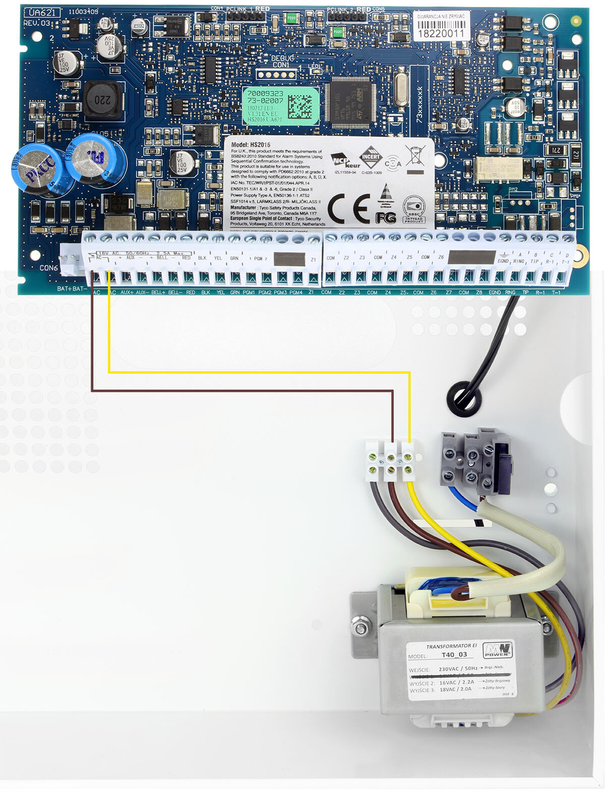Схема підключення корпусу OC40-172 до материнської плати DSC HS2016, HS2032, HS2064: