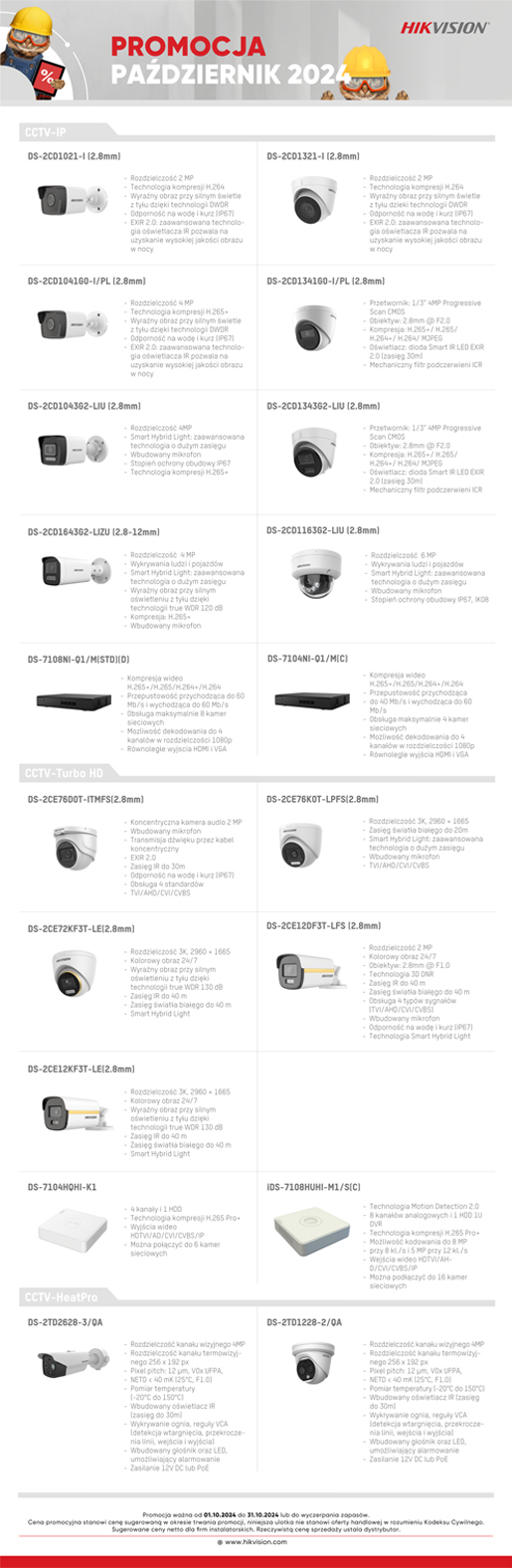 Wrześniowa promocja na produkty Hikvision to doskonała okazja, by zaopatrzyć się w najwyższej klasy sprzęt do monitoringu w atrakcyjnych cenach! Oferta obejmuje kamery, rejestratory oraz akcesoria, które zwiększą bezpieczeństwo Twojego domu lub firmy. Nie przegap szansy na nowoczesne rozwiązania w jeszcze lepszej cenie!