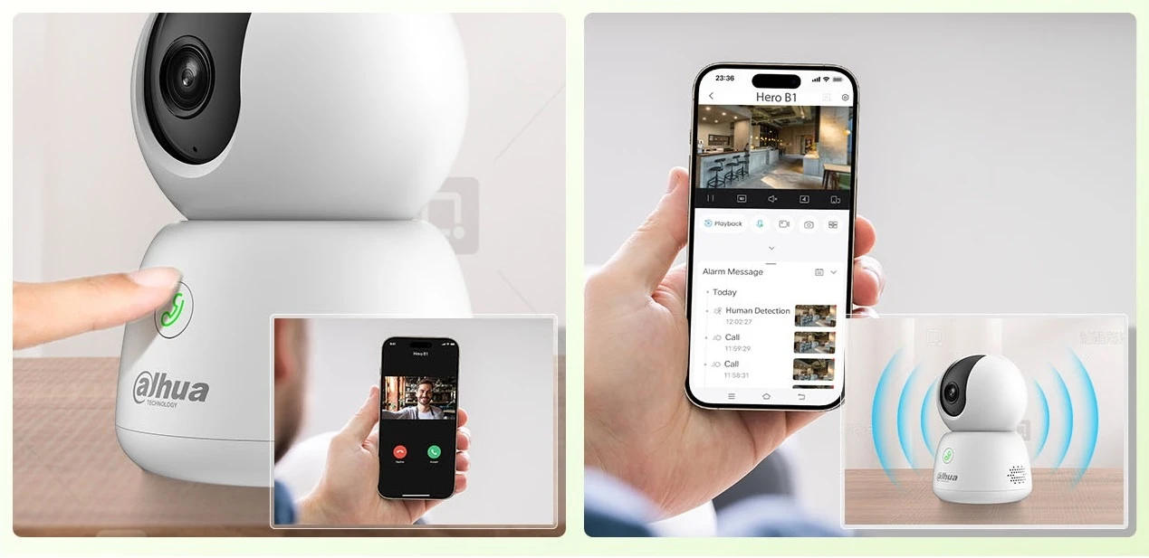 Камера H3B оснащена функцією двостороннього зв'язку, що дозволяє як розмовляти з друзями або співробітниками, так і відлякувати непроханих гостей.