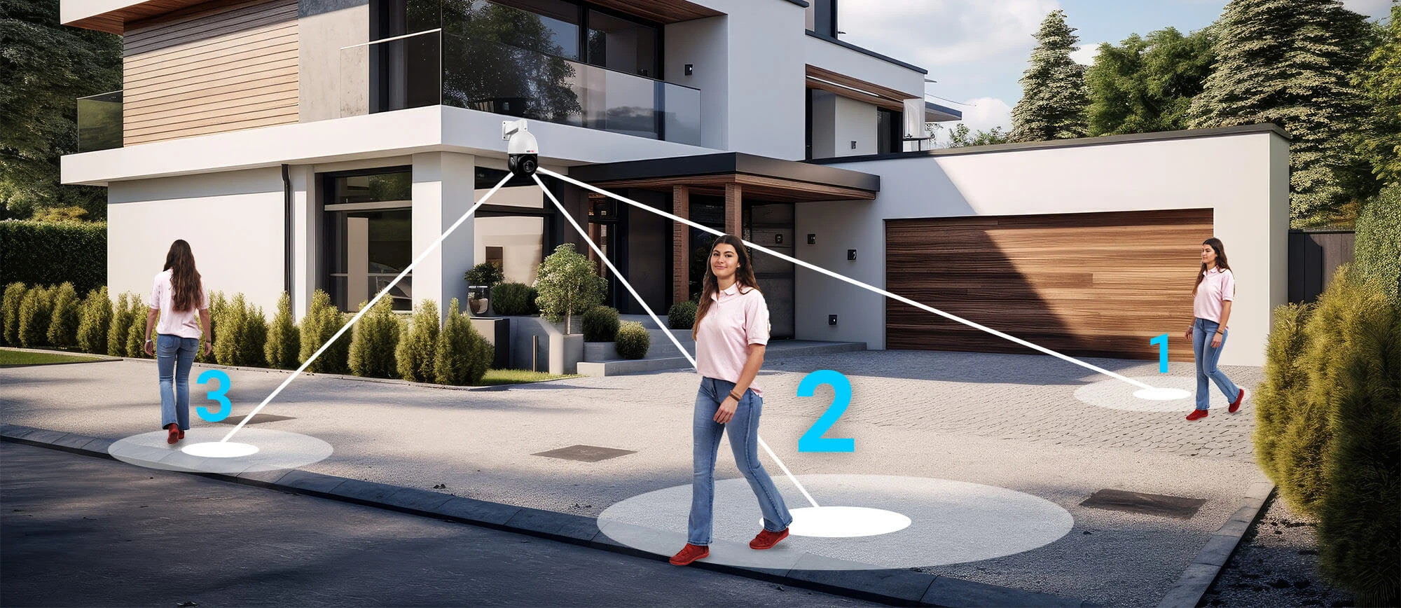 Функція 3D-відстеження поворотних камер спостереження дозволяє камері автоматично виявляти і слідувати за рухомими об'єктами в просторі, використовуючи тривісний рух (панорамування, нахил, зум). Камера інтелектуально регулює кут огляду і фокусну відстань, щоб утримувати об'єкт в центрі кадру, навіть коли він змінює напрямок або швидкість. Таким чином, система відеоспостереження підвищує ефективність спостереження, зменшуючи потребу в ручному управлінні і зводячи до мінімуму ризик пропуску важливих подій.