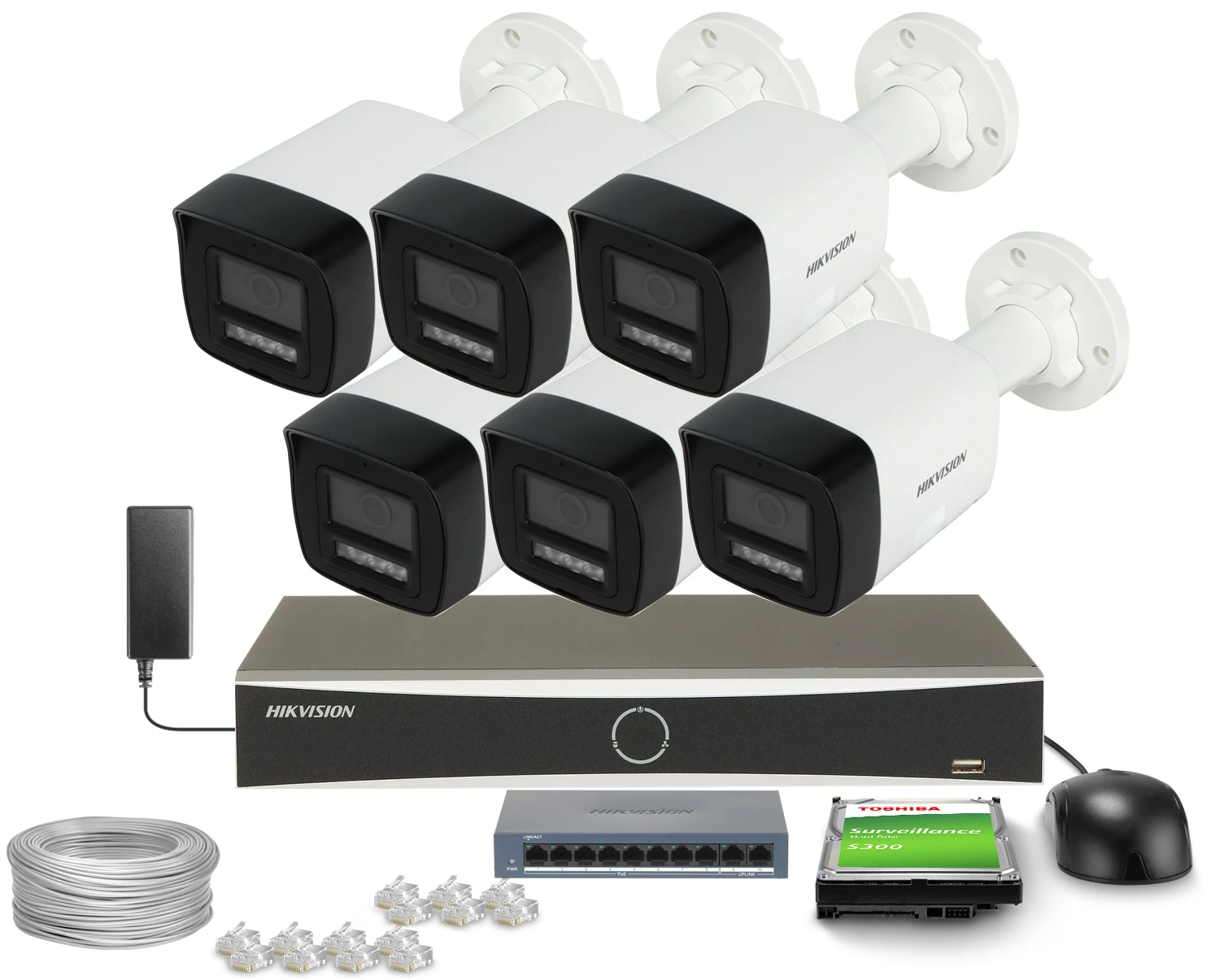 Набір для моніторингу Hikvision 6x DS-2CD1083G2-LIUF/SL Smart Hybrid Light 4K Активне відлякування